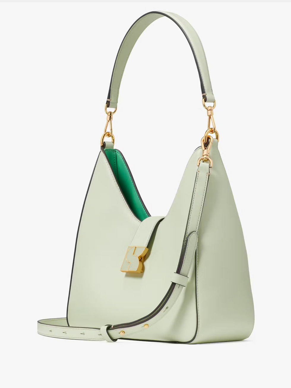 El Dakota Hobo Bag combina elegancia y funcionalidad en un diseño moderno y versátil. Confeccionado en cuero suave y forrado en faille, este bolso destaca por su silueta estilizada y el distintivo herraje en forma de “K”, sello de la marca. Sus medidas (10.25” de alto x 6.5” de ancho x 4.0” de fondo) lo hacen ideal para el día a día, con espacio suficiente para llevar un iPhone Max y una billetera continental. Incorpora un bolsillo interior con cremallera, un bolsillo deslizante, y un cierre magnético para mayor seguridad, con correa ajustable y removible.