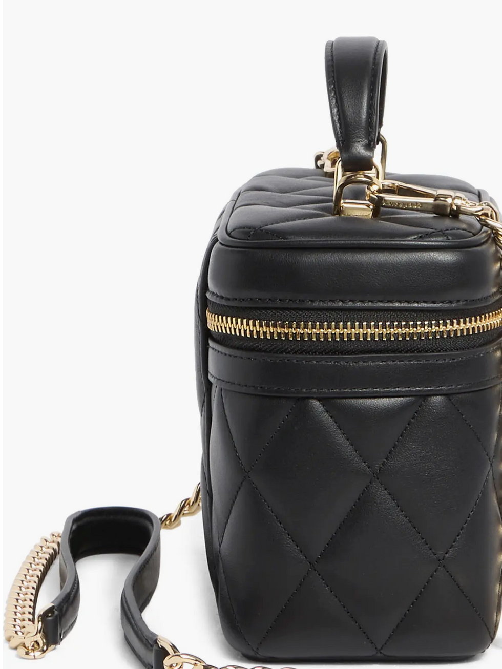 El brillo de su herraje con logotipo y el delicado cuero acolchado hacen de este bolso tipo baúl una pieza tan sofisticada como funcional. Su diseño estructurado ofrece espacio y estilo, mientras que las múltiples correas —incluida una elegante cadena removible— permiten llevarlo de distintas formas. Con cierre superior bidireccional, base plana y forro en jacquard con el emblema de la marca, este bolso de cuero importado es el equilibrio perfecto entre lujo y versatilidad.