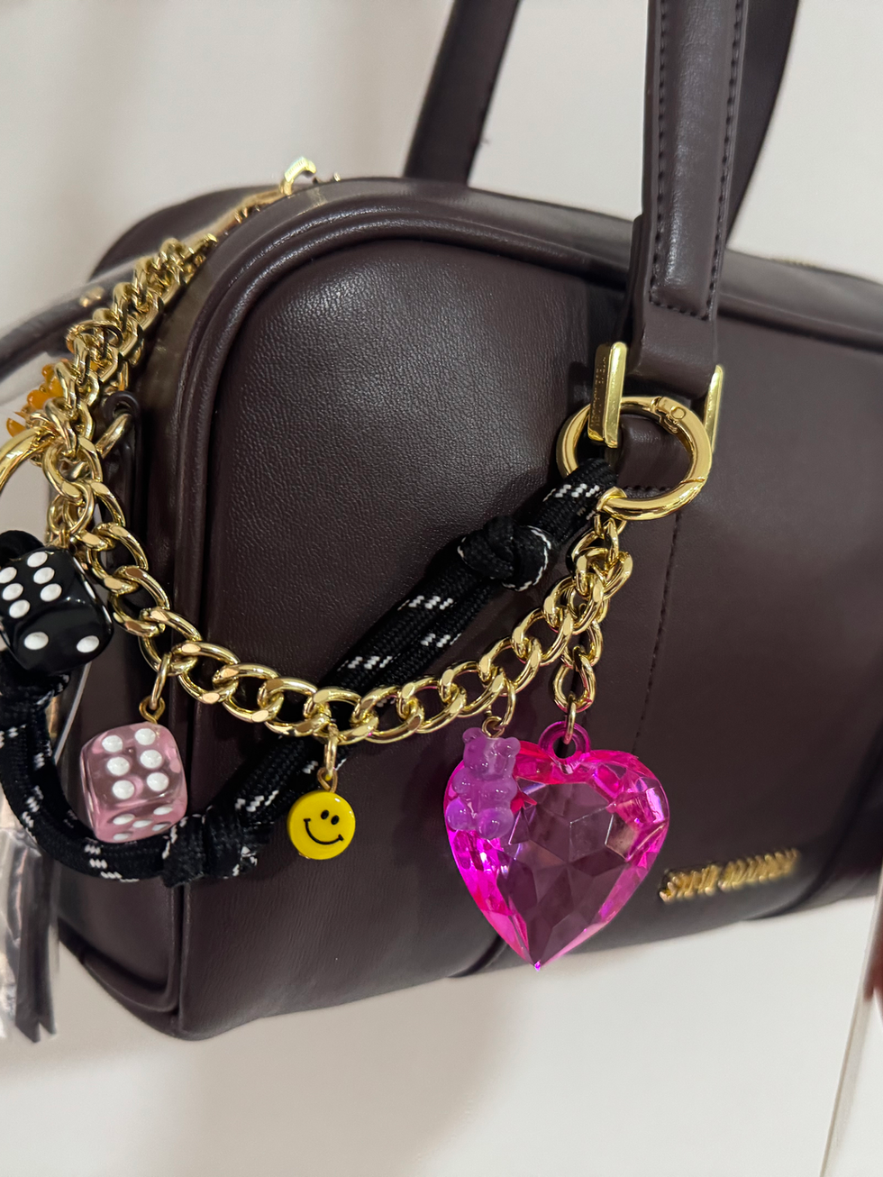 Este Steve Madden en tono café oscuro es la mezcla perfecta entre elegancia moderna y personalidad. Su color de tono lleva a vinotinto. Su diseño compacto y estructurado lo convierte en ese bolso ideal para elevar cualquier look sin esfuerzo. Pero lo que realmente lo hace irresistible es su combo: incluye un mini bolso-monedero en tono terracota —ideal para llaves, tarjetas o cash— y un charm decorativo que añade un toque divertido, único y lleno de estilo.